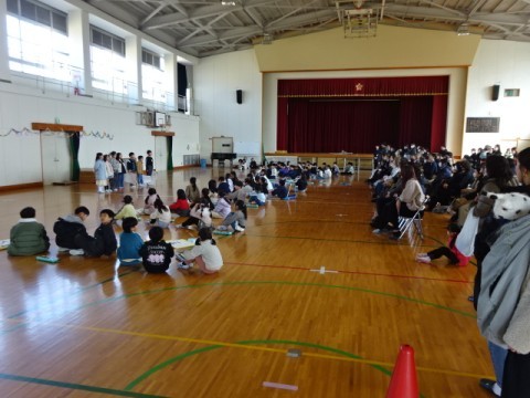 5時間目に体育館で学習参観「学習発表会」をおこないました。できるようになったことをグループごとに発表し,鍵盤ハーモニカで「きらきらぼし」を演奏したり,みんなで「それもいいね」を歌ったりしました。