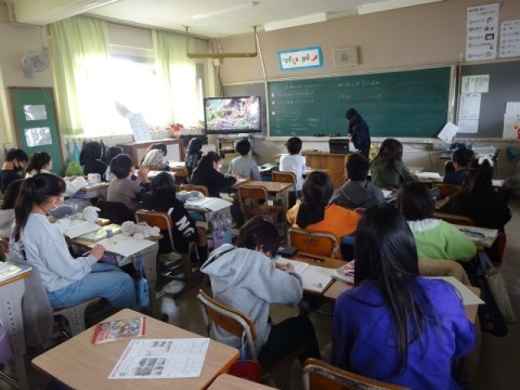 社会科で「森林とわたしたちのくらし」の学習をしています。映像も参考にしながら日本の森林の様子について調べました。