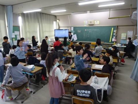 社会科では「市のようすのうつりかわり」の学習をしています。新しくできた店と昔からある店それぞれの良いところを考えました。
