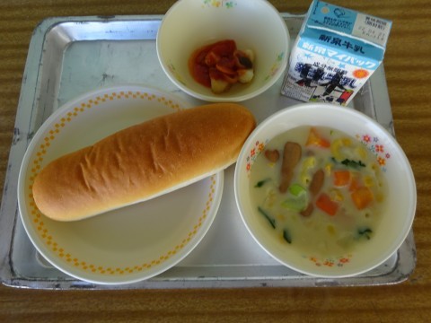 クリーム煮には,たっぷりのチンゲン菜が入りました。