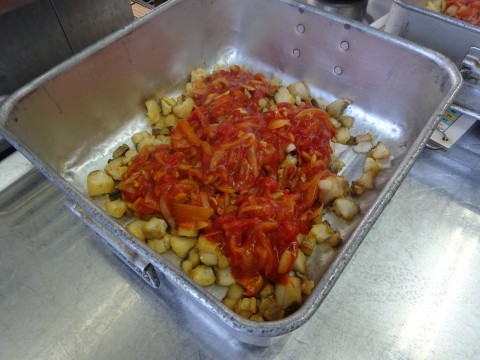 たらのナポリタン風は,角切りのたらを油で揚げて,