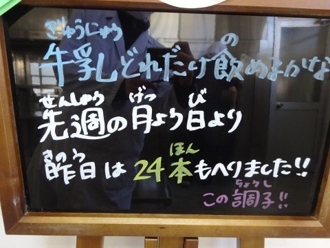 今週は給食委員会の企画「牛乳どれだけ飲めるかな?」を実施しています。