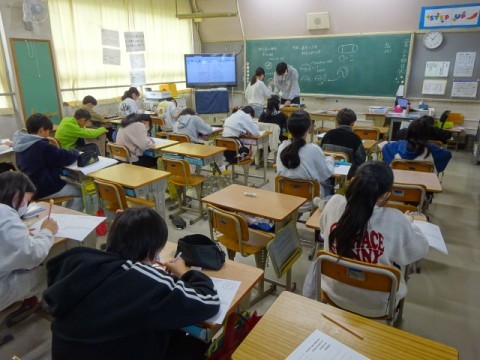 五年生で学習した漢字のまとめテストをしました。50問の問題に集中して取り組みました。