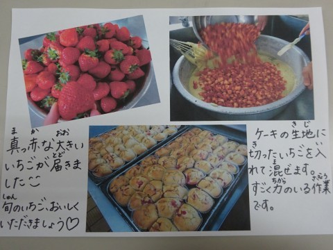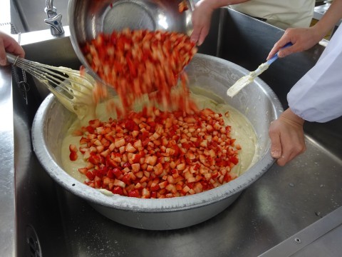 焼き上がりにはいちごのいい香りが調理場に広がりました!