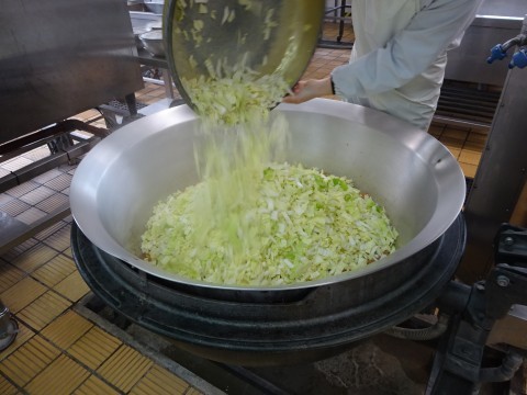 すき焼きうどんには,堺市産の白菜がたっぷり入りました。