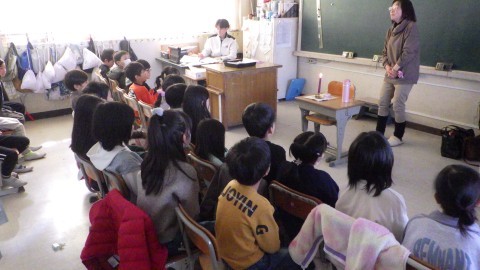 ろうそくの灯がともって,みんな静かに聞き入っていました。