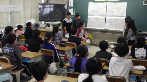 総合では,環境問題について調べたことをまとめて,3年生に発表します。