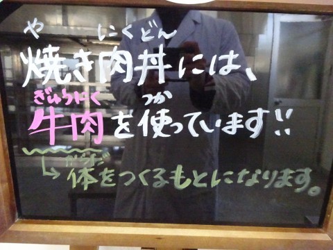 焼肉丼は牛肉を使用しました。