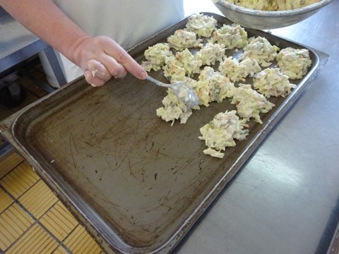 混ぜ合わせて,固さを見ながら水を入れて混ぜます。