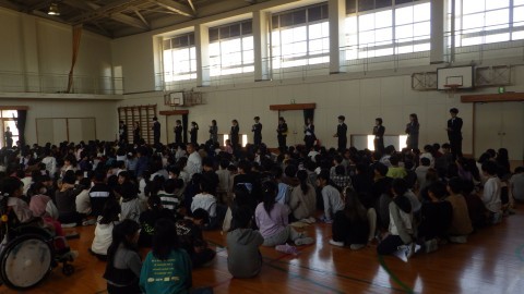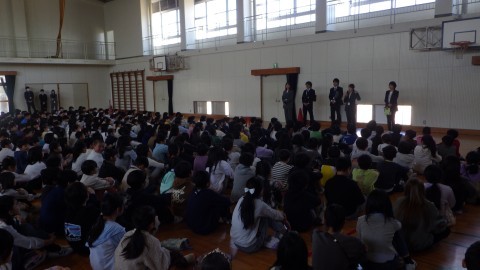 始業式では,新しく赴任された先生の紹介や校長先生・生徒指導の先生のお話,転入生の紹介がありました。