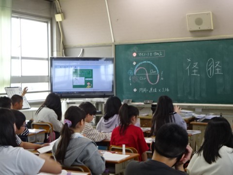 6年2組は,算数の学習の始めとして「マイノートを作ろう」というめあてで,円周を求める問題に取り組んでいました。