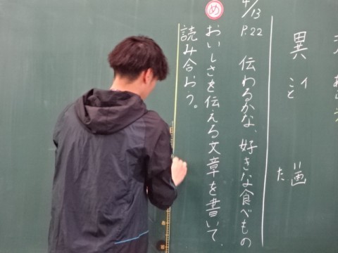 6年1組は,国語で「おいしさを伝える文章を書いて読み合おう」というめあてで,好きな食べ物についてどうすれば伝わるかを考えていました。