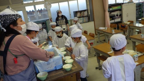 みんなの給食を一つずつ入れて置いていきます。