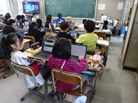 「ごみの種類や量について調べよう」というめあてで,一人一台端末を使ってごみにはどんな種類があるのかを調べていました。