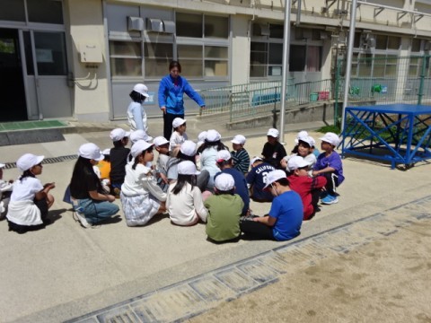 その後,実際に外へ出て,春の花や虫などを見つけていました。