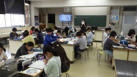 音楽室や理科室に移動して,それぞれの先生と一緒に学習を頑張っています。