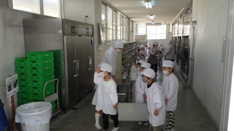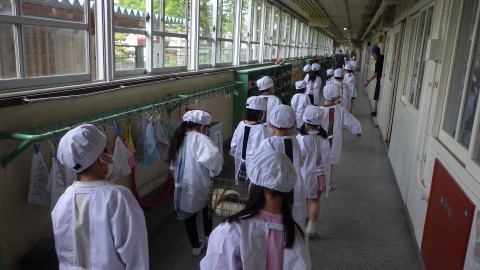 給食場から教室へ