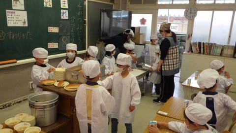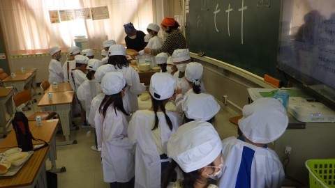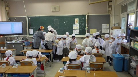 当番の人は,両手で丁寧に器を持って,おぼんへ置いてくれていました。