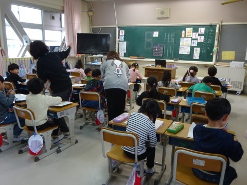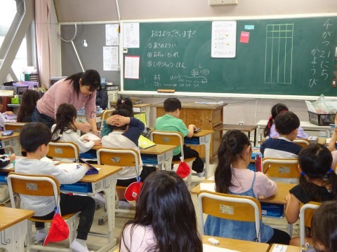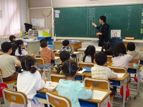 習ったひらがなを使って,たてにまっすぐ書く練習です。