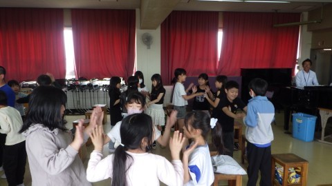 音楽は歌のリズムに合わせて,友だちと手を合わせて楽しそうでした。