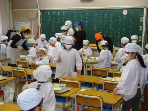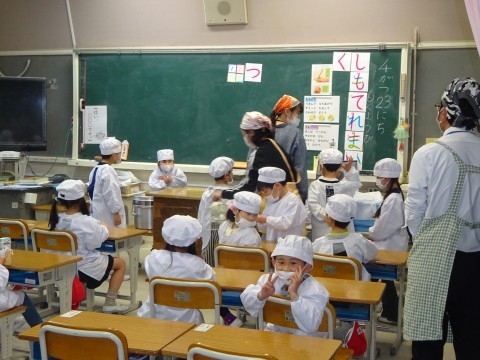 4/23(木)1年生 給食の準備