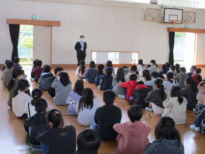 体育館で集会をして学年開きをしました。学年の先生方からいろいろなお話を聞きました。聞き終わると必ず拍手が出て,いい雰囲気でした。