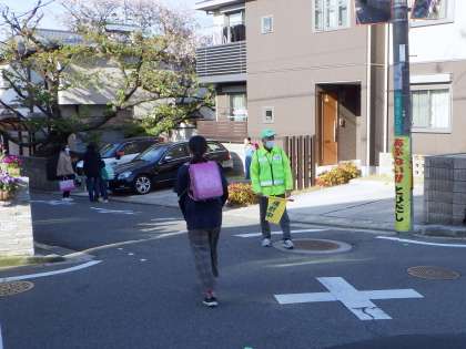 今朝は教職員が校区の各所で安全指導を行いました。