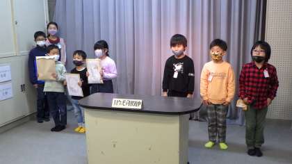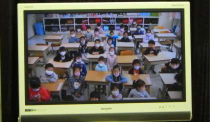 2年生の代表から1年生へ記念にあさがおの種をプレゼントしました。最後に1年生からのありがとうのメッセージビデオが放送されました。