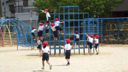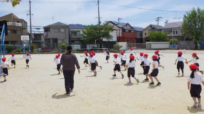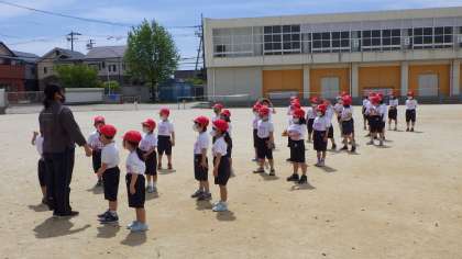 列にきっちり並ぶ練習をしていました。合間に遊具で遊びました。