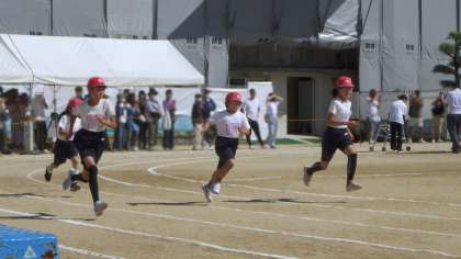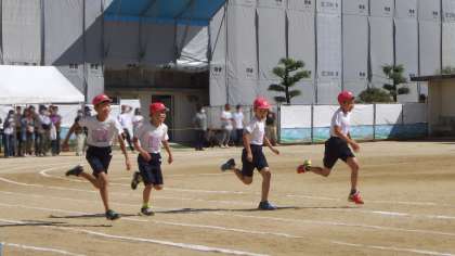 4年生も70m走です。徒走の競技は,ボランティアの保護者のみなさんが協力を運営に協力していただきました。