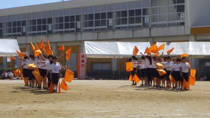 f l a g(フラッグ)という演技です。旗を持ってさまざまな動きをしました。ラスト場面が見事に決まりました。