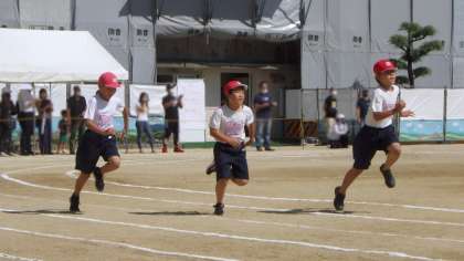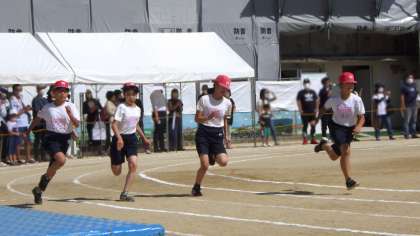 5年生と6年生は第3部です。80m走です。中学年よりスピードと迫力を感じました。