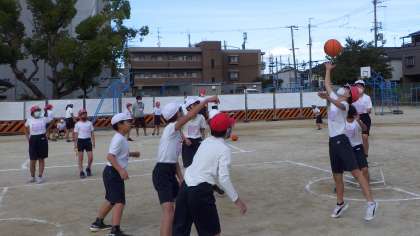 運動場での活動の様子です。6年生はクラブ写真も撮りました。