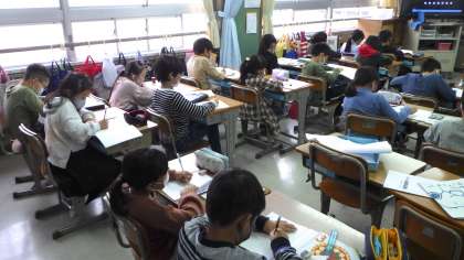 3ケタと1ケタの繰り上がりのある計算に取り組んでいました。