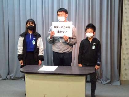 校長先生からはオリンピックで頑張っている人のお話がありました。生徒指導の先生と代表委員さんからは学校での過ごし方についてのお話がありました。