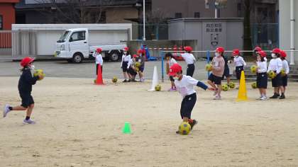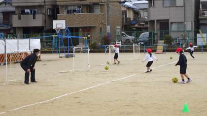 サッカーボールをシュートしてゴールに入れます。うまくシュートできるでしょうか?