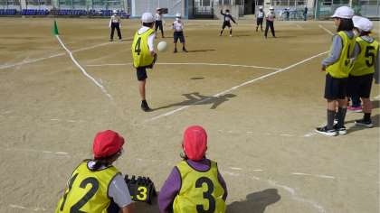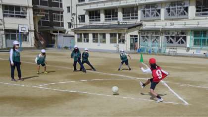 「キックベースボール」のゲームをしていました。
