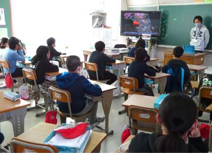 TVで資料映像を見て,「石見銀山」の学習をしていました。