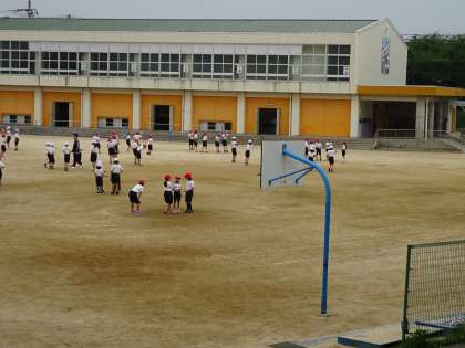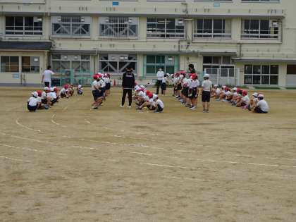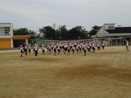 動きと隊形づくりです。覚えるのがとても早く,一生懸命に身体を動かしています。