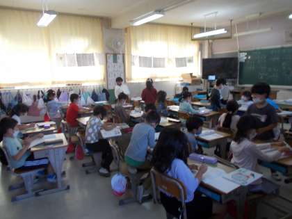 「たんぽぽのちえ」で学んでいるタンポポですが,花も綿毛も学校のなかにありますよ!