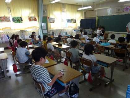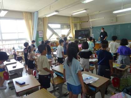 読み聞かせが終わった学級では、朝の会が始まります。