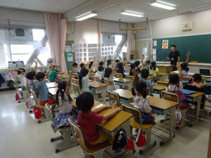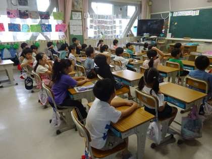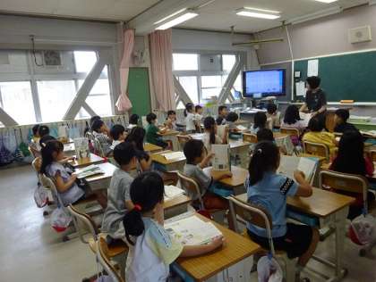 3時間目は、明日の校外学習の事前学習を多目的室で受けました。