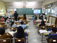 体育の学習と、図書の学習の様子です。体育では、足でボールをコントロールしています。