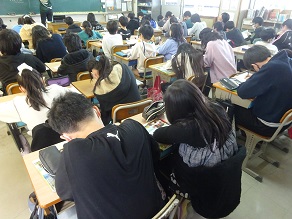 5年生の社会科の学習の様子です。私たちの生活と、情報の関係について学んでいます。