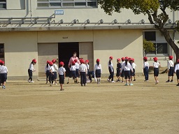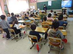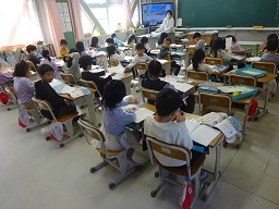 体育をしたり、算数の学習をしたりしています。算数では、図を使って考える学習です。