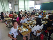 給食の様子です。おかわりもたくさんしています!