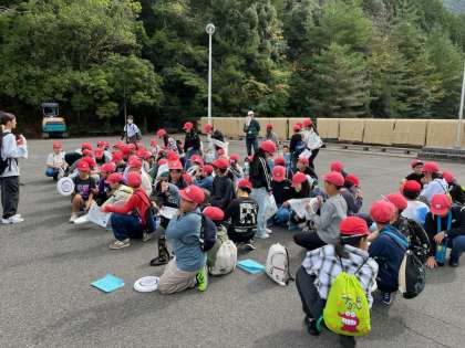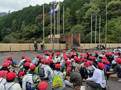 校旗をあげて、ディスクゴルフがスタートです。説明を聞いてフリスビーを受け取りました。