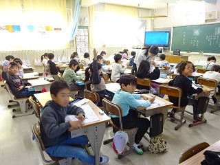 新出漢字の学習をしています。また、漢字ドリルにした練習に◎をつけてもらっています。