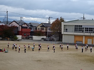 今日は風が冷たいです。しっかりと準備運動をして、体を動かしましょうね。