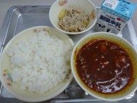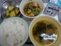 今日の給食は、 ・ごはん ・牛乳 ・わかめスープ ・厚揚げの中華煮 ・焼き大学...